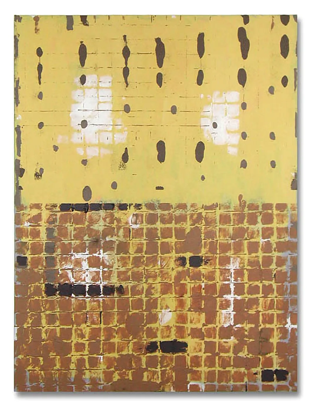 In this piece, I used a milk crate and industrial grid frames to establish a geometry with rules, but only loosely followed them. What interested me was not precision for its own sake, but the tension between system and drift, a kind of architectural structure and weathering. I’d experiment with these themes in many paintings of this period.